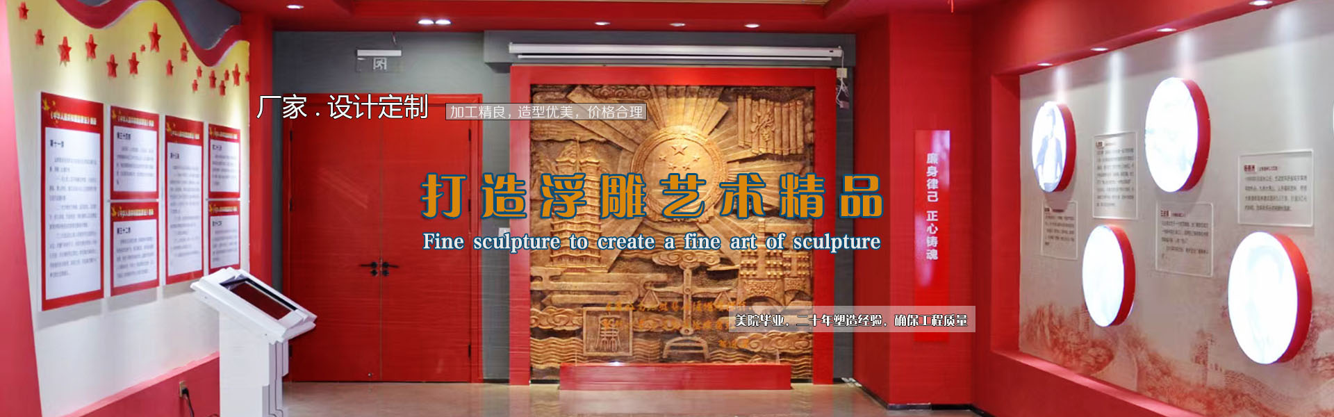 查看更多產品 + 電話:15978409299金蘭草浮雕是一家專業(yè)的玻璃鋼浮雕、鍛銅浮雕、鑄銅浮雕、不銹鋼浮雕、砂巖浮雕、石材浮雕、鐵藝浮雕、水泥浮雕等設計與施工的雕塑藝術企業(yè),專注于學校浮雕、公園浮雕、廣場浮雕、博物館浮雕、展覽館浮雕、法院浮雕、景區(qū)浮雕、醫(yī)院浮雕、部隊浮雕、大廳浮雕、外墻浮雕、護坡浮雕等,服務社會,為廣大業(yè)主朋友們設計制作出精品浮雕。企業(yè)自成立以來,一直致力于高水準浮雕的設計與施工,真心的服務,力求讓每一位客戶滿意。多年來,公司服務全國,業(yè)績遍布各地,得到眾多客戶的肯定。 公司秉承對客戶負責的原則,堅持原創(chuàng)設計,堅持品質,堅持每一件浮雕作品不僅僅要打動客戶,更要打動自己。讓客戶放心,對自己負責,是公司始終堅持的方針。 展望未來,金蘭浮雕將以更加開放的胸懷迎接發(fā)展中的挑戰(zhàn)和機遇,“開拓創(chuàng)新,合作共贏,追求卓越”,與社會各界朋友一起攜手共創(chuàng)輝煌! 公司自成立以來,一直致力于高水準浮雕、雕塑、景觀設計與施工,真心的服務,力求讓每一位客戶滿意。多年來,公司服務全國,業(yè)績遍布各地,得到眾多客戶的肯定。 公司秉承對客戶負責的原則,堅持原創(chuàng)設計,堅持品質,堅持每一件雕塑作品不僅僅要打動客戶,更要打動自己。讓客戶放心,對自己負責,是公司始終堅持的方針。 展望未來,金蘭園林景觀將以更加開放的 ...